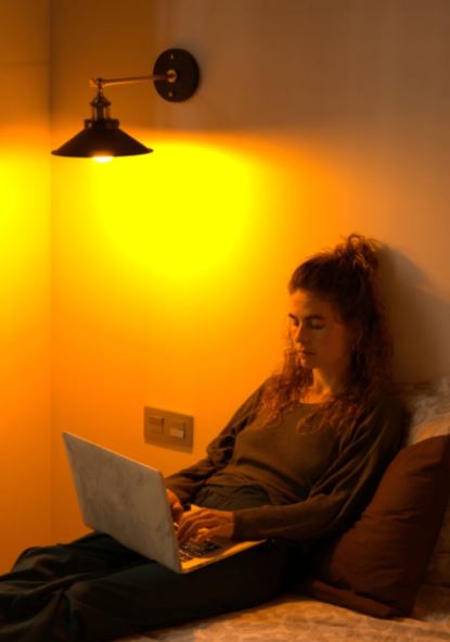 Al no emitir luz azul (380-500 nm), esta bombilla ámbar sin luz azul permite que tu organismo active la producción natural de melatonina. Así tu cuerpo reconoce que es de noche, ayudándote a conciliar el sueño más rápido y a disfrutar de un descanso más profundo.